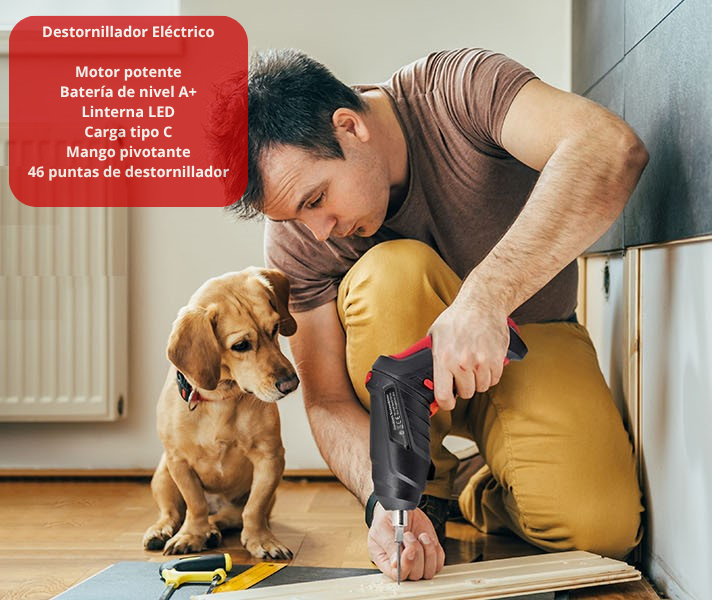 El taladro destornillador inalámbrico te ofrece potencia, precisión y comodidad en un solo kit. Su batería recargable por USB y diseño ergonómico te permiten trabajar sin esfuerzo ni cables. Con luz LED y 48 piezas incluidas, tendrás todo lo necesario para cualquier reparación o proyecto. Convierte tus tareas difíciles en trabajos rápidos, cómodos y profesionales desde casa.
